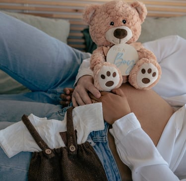 Accès à des robes de grossesses, conseils sur les tenues, coiffures et maquillage. Des accessoires bébé sont mis à disposition comme décors.